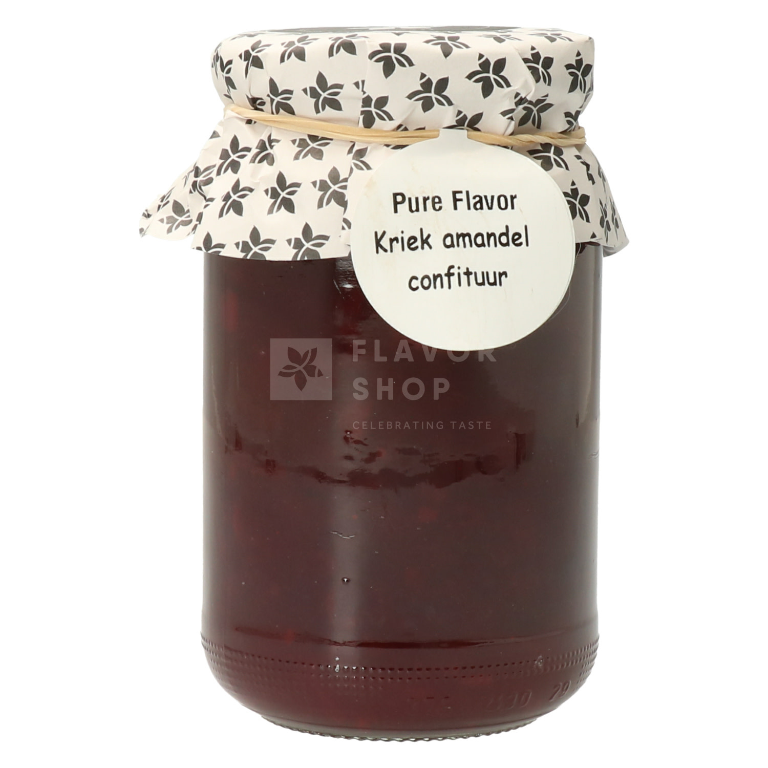 De zalige confituren van Pure Flavor worden op artisanale manier en zonder bewaarmiddelen of andere toevoegingen gemaakt. En ze zijn overheerlijk! Het grote geheim? Voor deze confituren gebruiken we alleen maar de beste, rijpe vruchten en slechts één derde van de gewoonlijke hoeveelheid suiker! Dit maakt deze confituur van krieken en amandel niet alleen lekkerder, maar ook gezonder.