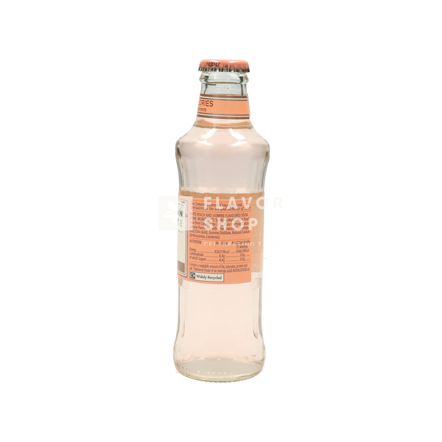 London Essence White Peach & Jasmine tonic heeft een zachte fruitige aroma aangevuld met een delicate bloemige ondertoon. De smaak proeft als aangename fruittoon met een delicate bloemige afdronk en een vleugje hemels jasmijnaroma.