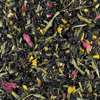 Ingrediënten: zwarte thee (52%), groene thee (44%), aroma, rozenblaadjes, zonnebloembloesem