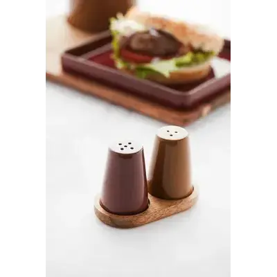 Deze set bestaat uit twee strak vormgegeven vaatjes in warme, natuurlijke kleuren. Gemaakt van hoogwaardig steengoed keramiek zijn ze niet alleen stijlvol, maar ook duurzaam en praktisch in gebruik. De houder is vervaardigd uit acaciahout en zorgt voor een mooie presentatie en een stabiele plaats op tafel of aanrecht.