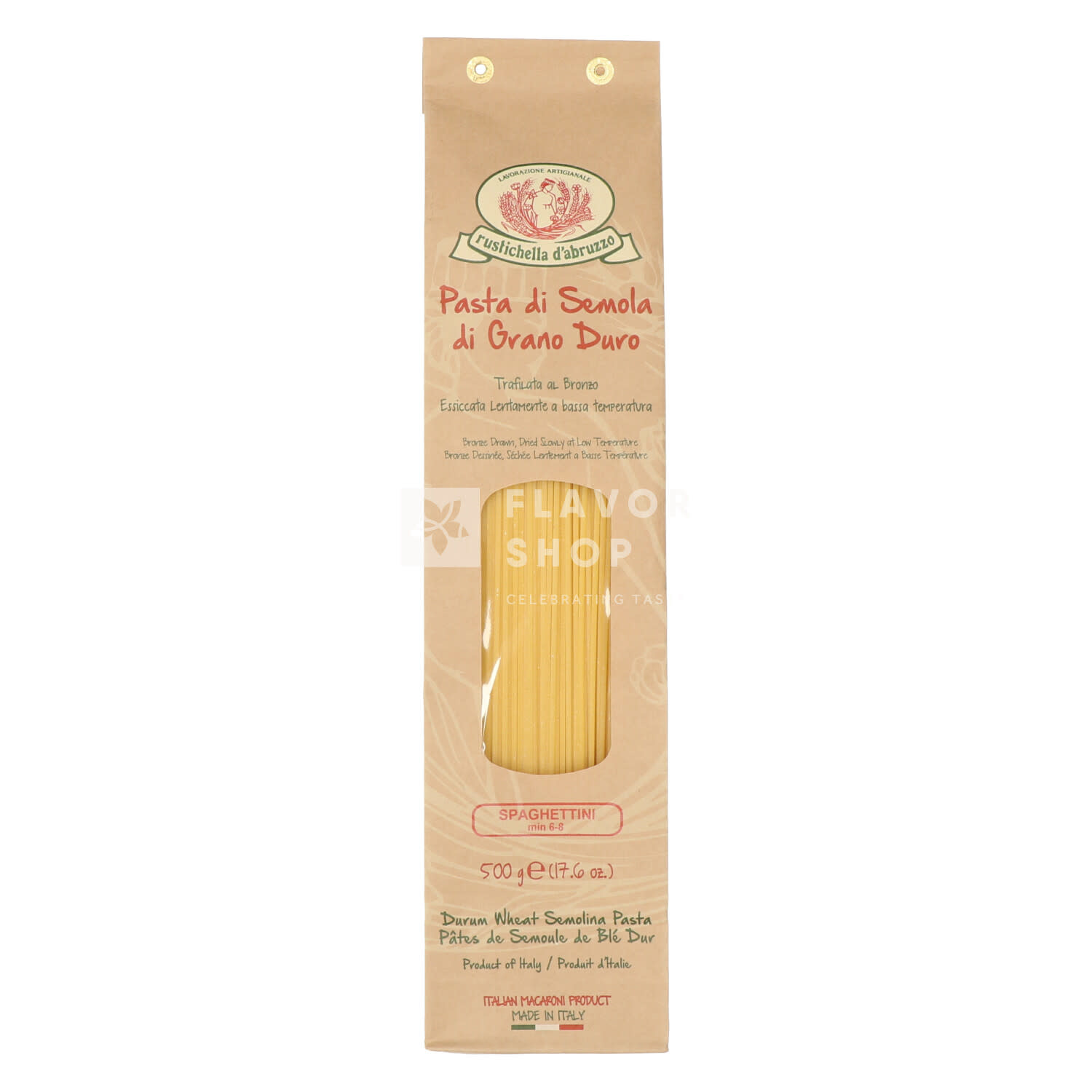 De spaghettini van Rustichella d'Abruzzo wordt op ambachtelijke wijze geproduceerd met het beste tarwegriesmeel en fris bronwater uit de omliggende bergen. De pasta wordt op 35 °C en gedurende lange tijd gedroogd. Dit zorgt voor een unieke en lekkere smaak. Doordat de pasta in bronzen mallen wordt gemaakt, blijft de saus beter kleven. Met de spaghettini van Rustichella d'Abruzzo haal je een echte topper in huis!