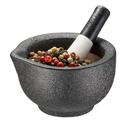 Bereid verse specerijen en kruidenmixen met deze compacte porseleinen vijzel en stamper in stijlvol zwart. Het perfecte hulpmiddel voor kleine hoeveelheden en snelle bereidingen!
