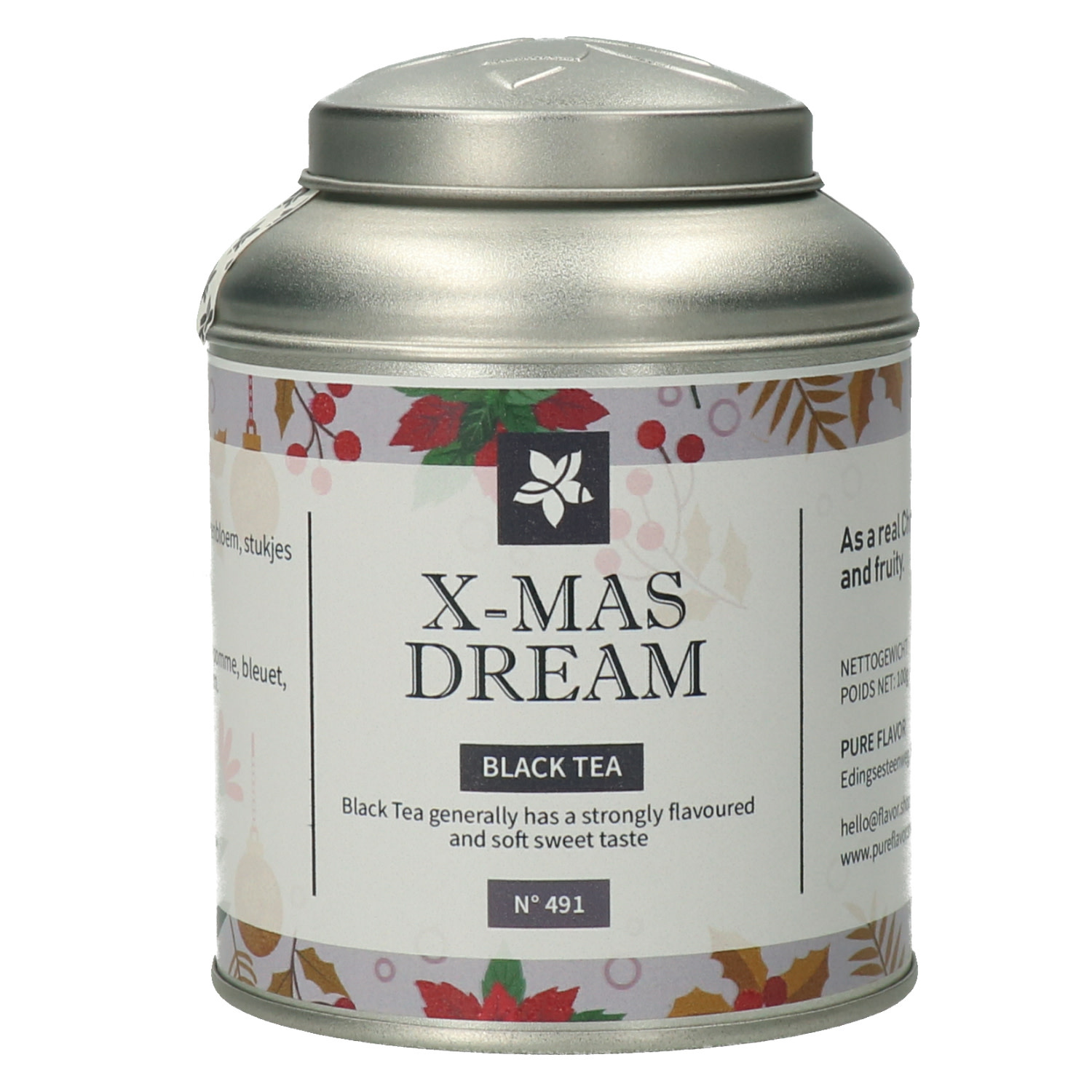 Pure Flavor X-Mas Dream Nr. 491 brengt de kerstsfeer naar je theekopje met een heerlijke balans van kruidige en fruitige ingrediënten. Deze feestelijke thee bevat een mengeling van zwarte thee, verfrissende citrusschil en sappige stukjes appel, gecombineerd met de warmte van kaneel en de subtiele florale toetsen van korenbloem, rozenblaadjes en rozebottel. Het zorgvuldig samengestelde aroma maakt deze thee een ware traktatie voor de feestdagen.