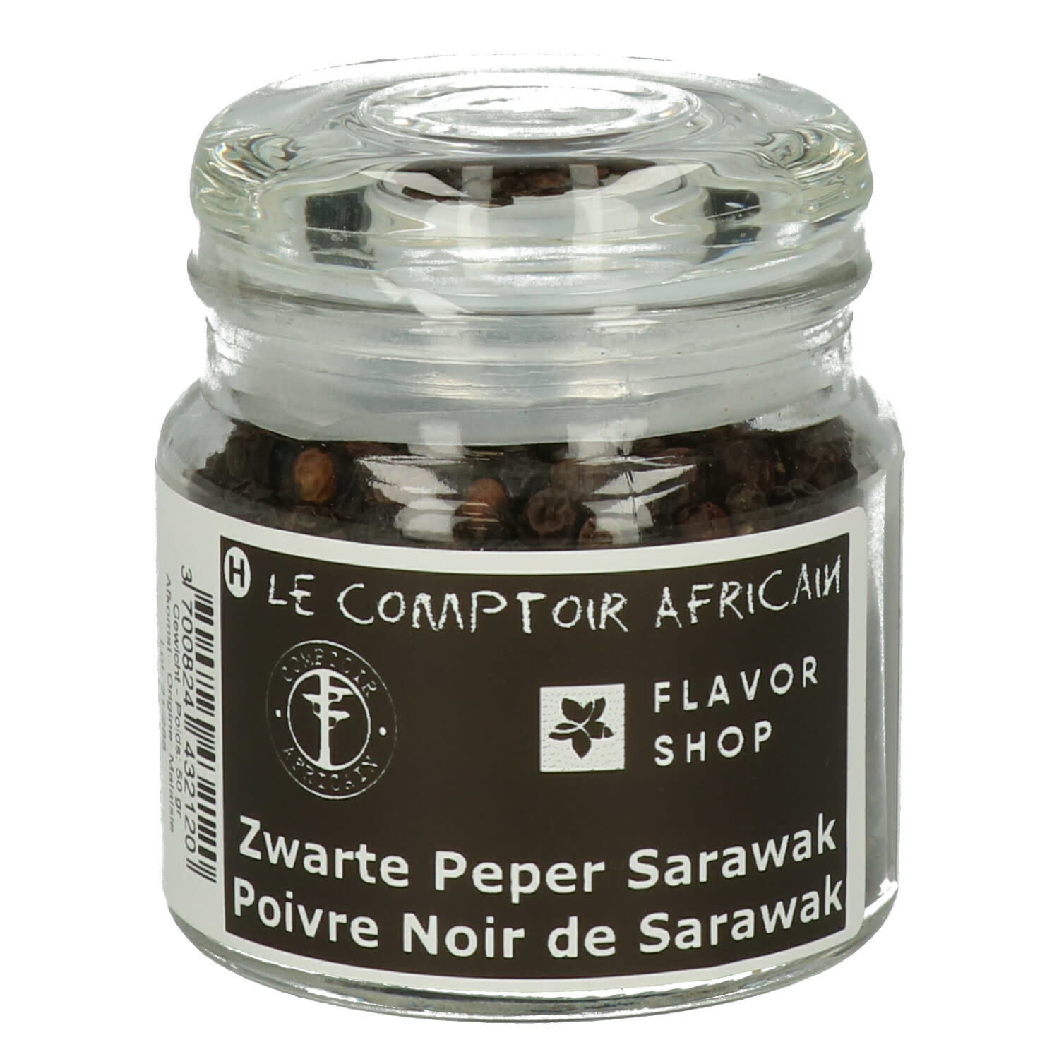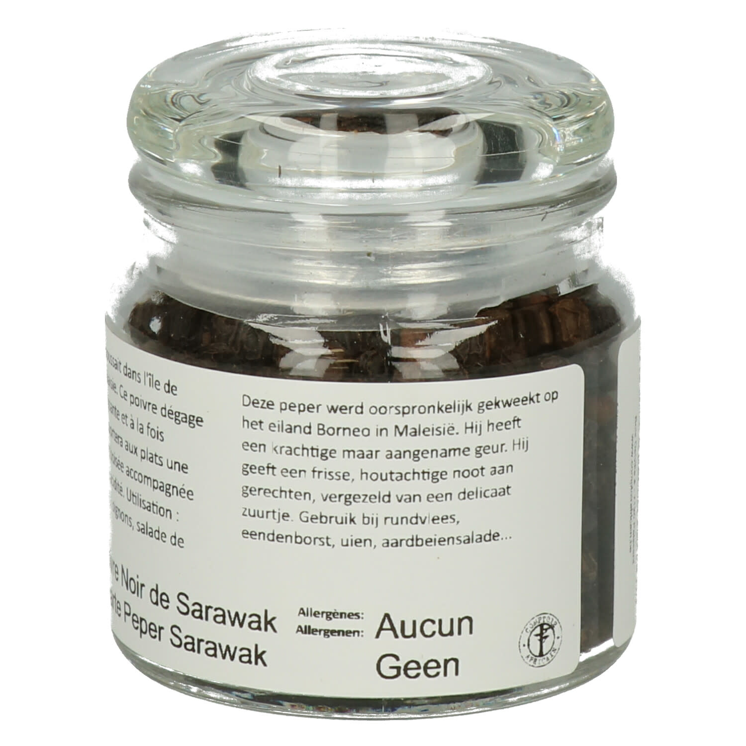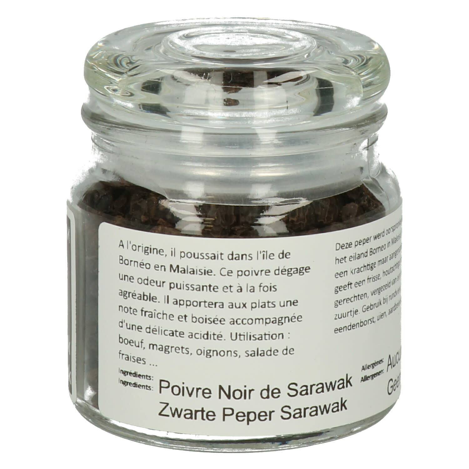 Deze peper werd oorspronkelijk gekweekt op het eiland Borneo in Maleisië. De zwarte peper van Sarawak is de meest aromatische peper en de pittigste tussen de klassieke pepersoorten. Hij heeft een krachtige, maar aangename geur. Hij geeft een frisse, citroenachtige en houtachtige noot aan gerechten. Gebruik bij rundvlees, eendenborst, uien, aardbeiensalade...